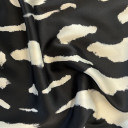 Štampani saten prefinjenog sjaja. Materijal je nežan na dodir, lagane teksture i lepog pada. Idealan je za kreiranje elegantnih odevnih komada poput haljina, košulja, bluza, kombinezona i kimona. Takođe je pogodan za spavaćice, luksuzne pidžame i ogrtače. Ova tkanina je neprovidna, stoga nema potrebe za postavljanjem.