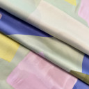 Štampani saten prefinjenog sjaja. Materijal je nežan na dodir, lagane teksture i lepog pada. Idealan je za kreiranje elegantnih odevnih komada poput haljina, košulja, bluza, kombinezona i kimona. Takođe je pogodan za spavaćice, luksuzne pidžame i ogrtače. Ova tkanina je neprovidna, stoga nema potrebe za postavljanjem.