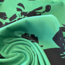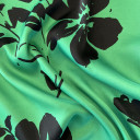 Štampani saten prefinjenog sjaja. Materijal je nežan na dodir, lagane teksture i lepog pada. Idealan je za kreiranje elegantnih odevnih komada poput haljina, košulja, bluza, kombinezona i kimona. Takođe je pogodan za spavaćice, luksuzne pidžame i ogrtače. Ova tkanina je neprovidna, stoga nema potrebe za postavljanjem.