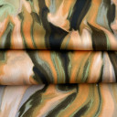 Štampani saten prefinjenog sjaja. Materijal je nežan na dodir, lagane teksture i lepog pada. Idealan je za kreiranje elegantnih odevnih komada poput haljina, košulja, bluza, kombinezona i kimona. Takođe je pogodan za spavaćice, luksuzne pidžame i ogrtače. Ova tkanina je neprovidna, stoga nema potrebe za postavljanjem.