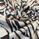 Štampani saten prefinjenog sjaja. Materijal je nežan na dodir, lagane teksture i lepog pada. Idealan je za kreiranje elegantnih odevnih komada poput haljina, košulja, bluza, kombinezona i kimona. Takođe je pogodan za spavaćice, luksuzne pidžame i ogrtače. Ova tkanina je neprovidna, stoga nema potrebe za postavljanjem.