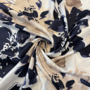 Digitalno štamapani saten mat sjaja. Ovaj materijal je nežan na dodir i lepršav. Namena mu je izuzetno široka, pogodan je za kreiranje elegantnih odevnih predmeta poput haljina, košulja, bluza, kombinezona i kimona. Može se takođe koristiti i za spavaćice, luksuzne pidžame i kućne ogrtače.