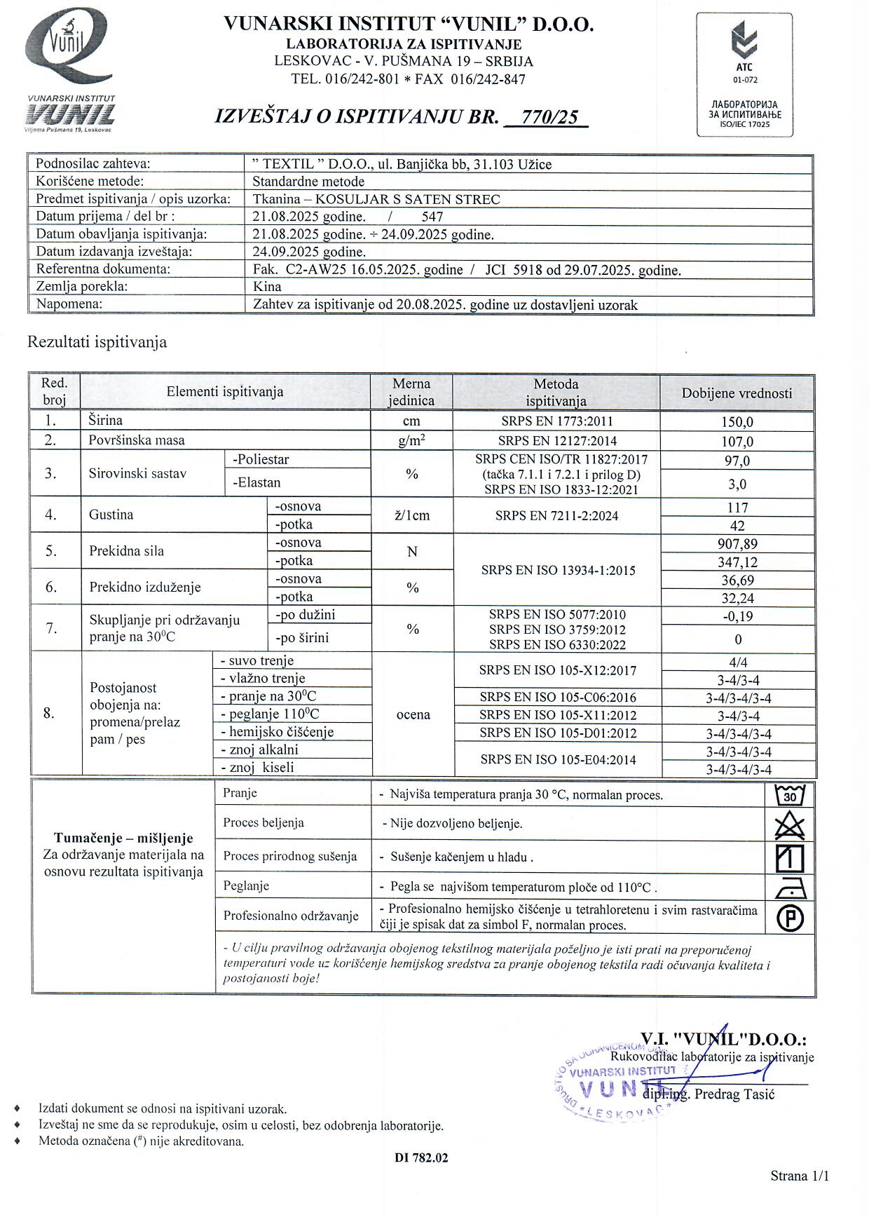 Elegantni, svilenkasti saten poliester koga odlikuje luksuzni sjaj i mekoća. U sastavu ima likru koja pruža udobnost i fleksibilnost. Ne gužva se i pogodan je za drapiranje i plisiranje. Uz veliku paletu boja njegova primena je izuzetno široka. Savršen je za svečane prilike, maturske i satenske haljine, satenske bluze i odela, haljine za venčanja i dekoraciju.
