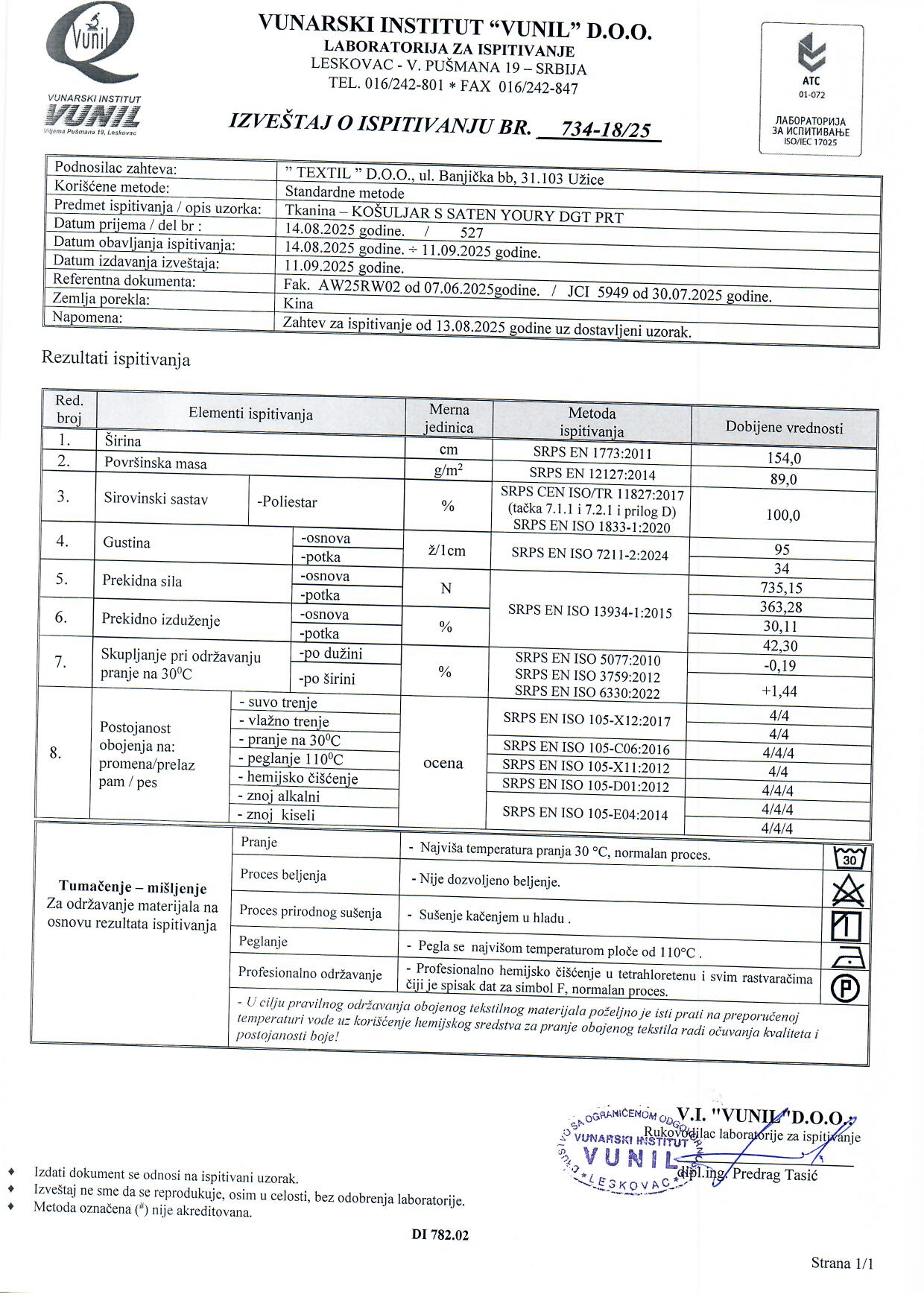 KOŠULJAR S SATEN YOURY DGT PRT je lagana i elegantna košuljarska tkanina sa blagim sjajem i digitalnim printom. Zbog svoje mekoće i glatke teksture, idealna je za izradu košulja, bluza, haljina i drugih komada koji zahtevaju lagan i lepršav materijal sa upečatljivim vizuelnim utiskom.