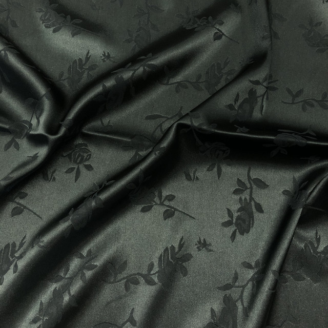 Svilenkasti saten, izraženog sjaja, sa žakard uzorkom i blago naglašenom teskturom. Ova tkanina ekskluzivnog izgleda idealna je za lux kolekcije, ali svoju primenu može pronaći čak i u programu rublja, za izradu unikatnih spavaćica, ogrtača i pidžama. Preporučujemo još i šivenje svečanih košulja, bluza, jednostavnih slip haljina, kimona, pidžama odela i još mnogo toga!