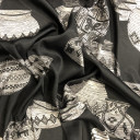 Sjajna i elegantna tkanina vrhunskog dizajna. Lepršav i lagan ovaj saten speman je za zabavu! Kreirajte sve - od drapiranih bluza, košulja, pidžama odela, širokih pantalona sa visokim strukom, haljina… Pogodan za svečane kolekcije, ali svoju primenu može pronaći u odeći za svaki dan.