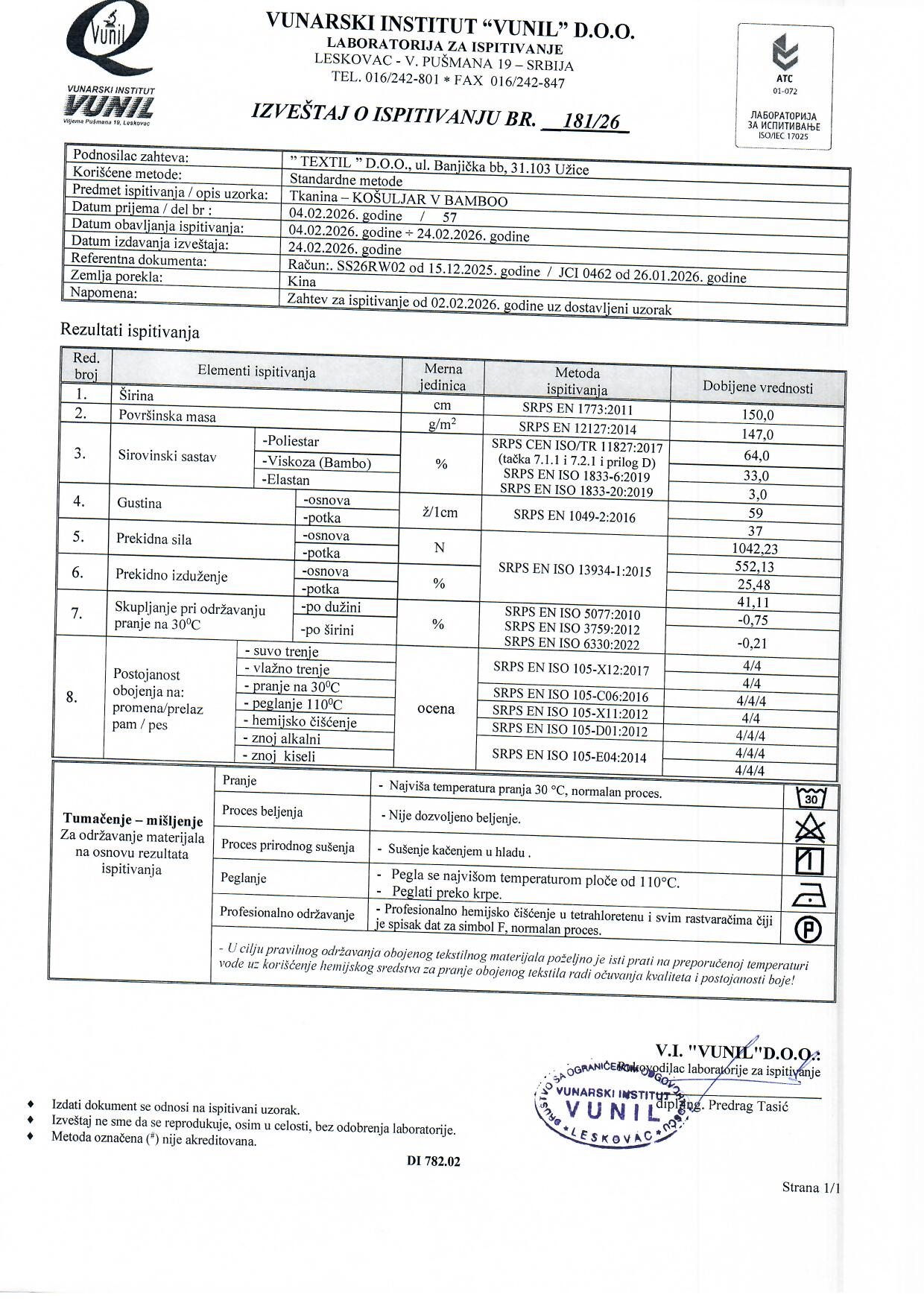 Lagani košuljarski materijal od mešavine poliestera, bambusovih vlakana i likre. Bambus pruža prirodnu mekoću, prozračnost, antibakterijska svojstva i čini ga ekološki prihvatljivim izborom, dok likra pruža elastičnost. Prijatan i funkcionalan izbor za moderne, udobne košulje i haljine.