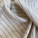 Prugasta lanena tkaninana u mešavini sa viskozom sa naglašenim prirodnim tkanjem i završnom doradom koja joj daje Izuzetno mekan opip. Pogodna je za: haljine, košulje, bluze, tunike, kombinezone, letnje setove, ležerne sakoe, kardigane, suknje.
