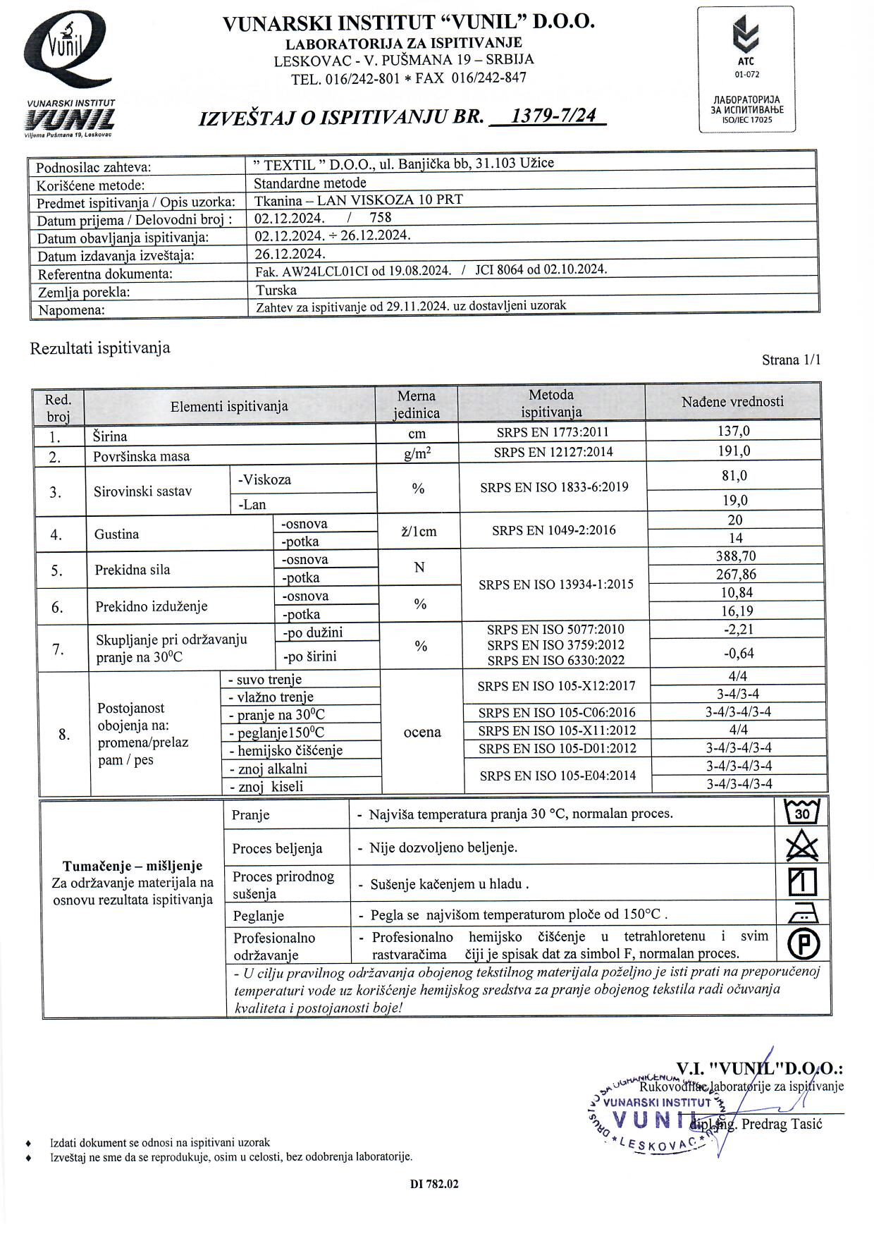 Dezenirani prirodni materijal, kombinacija lana i viskoze što ga čini mekim na dodir. Izuzetno prijatan i udoban, pogodan je za tople letnje dane. Od njega se mogu šiti ležerne haljine, letnja odela, bermude, tunike, suknje, pantalone, kombinezoni.