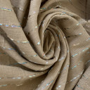 Osvežite vaše letnje kolekcije unikatnim lanom u boji sa vezenim prugama. Izražene teksture, a opet mekan i prijatan. Ovaj materijal ima prirodno svojstvo da hladi, pa je idelan a za tople dane. Od njega se mogu šiti ležerne haljine, letnja odela, bermude, bluze, tunike, košulje, suknje, pantalone, kombinezoni.
