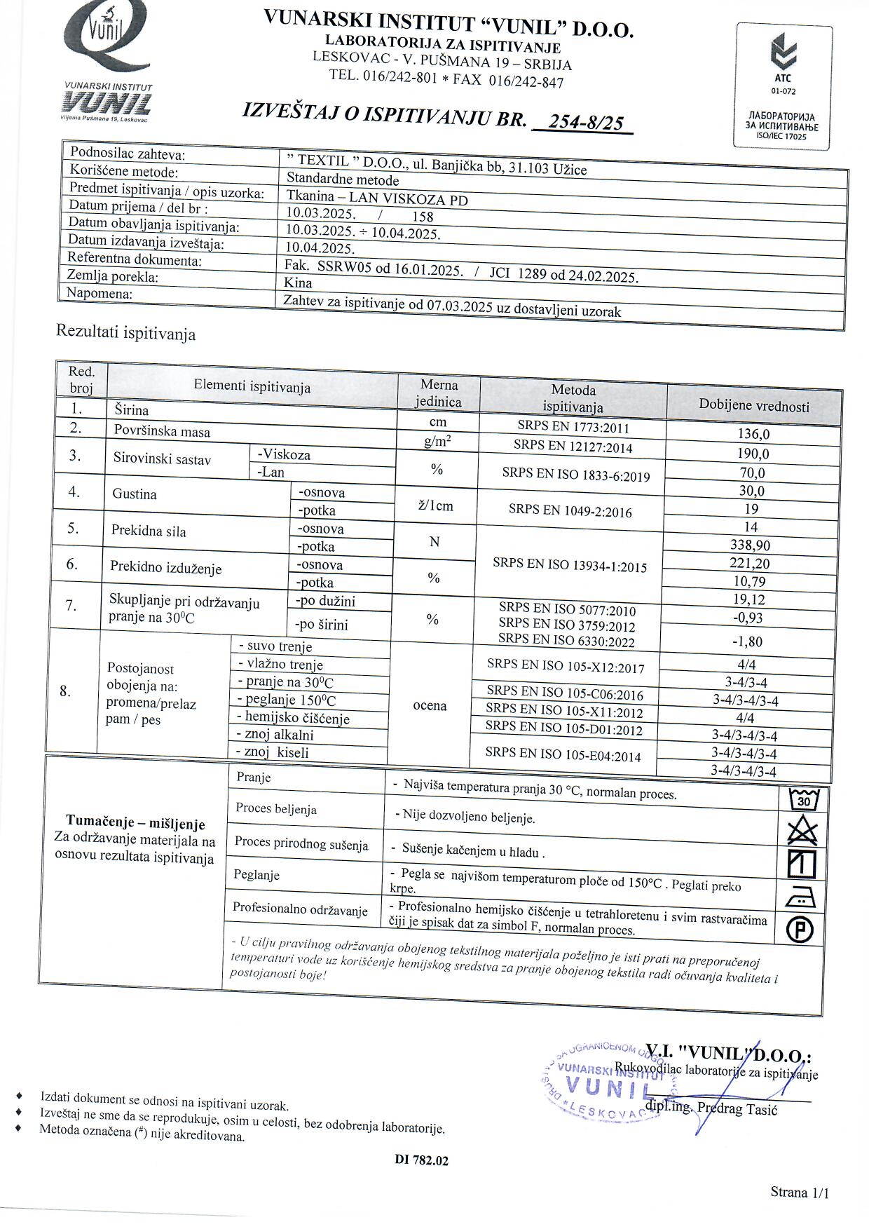 Ova lanena tkanina je prirodni materijal, izuzetno prijatan i udoban, pogodan za tople letnje dane. Po sastavu je kombinacija lana i viskoze što ga čini mekanim na dodir. Ne isteže se i izuzetno je izdržljiv. Pogodan za šivenje letnje odeće kao što su ležerne letnje haljine, lanena odela, bermude, bluze, tunike, suknje, lanene pantalone, kombinezoni..