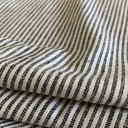 Prugasti dezenirani lan. Prirodni materijal čiji je sastav kombinacija lana i viskoze što ga čini mekšim na dodir. Izuzetno prijatan i udoban pogodan je za tople letnje dane. Idealan za casual i poslovne sakoe, suknje, mantil haljine, jakne ili ležerne pantalone sa dubokim strukom.