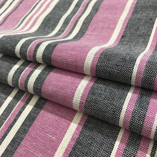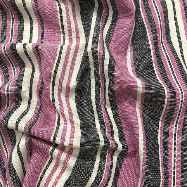 Prugasti dezenirani lan. Prirodni materijal čiji je sastav kombinacija lana i viskoze što ga čini mekšim na dodir. Izuzetno prijatan i udoban pogodan je za tople letnje dane. Idealan za casual i poslovne sakoe, suknje, mantil haljine, jakne ili ležerne pantalone sa dubokim strukom.