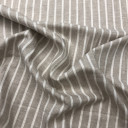 Prugasti dezenirani lan. Prirodni materijal čiji je sastav kombinacija lana i viskoze što ga čini mekšim na dodir. Izuzetno prijatan i udoban pogodan je za tople letnje dane. Idealan za casual i poslovne sakoe, suknje, mantil haljine, jakne ili ležerne pantalone sa dubokim strukom.