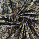 Ako tražite glamurozne kombinacije ovo je materijal za vas! Dezenirani pliš intenzivanog sjaja i izuzetno mekanog opipa. Digitalno štampan, što omogućava neverovatno detaljan i jasan dizajn. Koristi se za izradu haljina, elegantnih odela, pantalona, suknji, bluza, jakni, kardigana, pa čaki i trenerki - ovaj materijal je pogodan za sve!