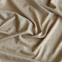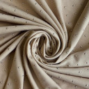 Poliesterska trikotaža sa premazom koji stvara efekat cirkona, pružajući elegantan izgled vašim kolekcijama. Namenjena za izradu modnih komada, večernjih haljina, elegantnih košulja i scenskih kostima, kao i drugih odevnih predmeta prefinjenog i luksuznog izgleda.