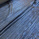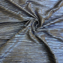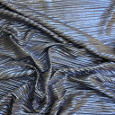 Elegantna, plisirana poliesterska trikotaža koju odlikuje veća gramaža i sjajni foil. Jednistvena u svom dizajnu i luksuznog izgleda pogodna je za svečane, ali svakodnevne odevne predmete kao što su: lepršave haljine i suknje, kombinezoni, majice i tunike sa bočnim prorezima sa strane...
