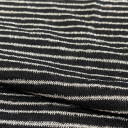Poliesterska trikotaža, tanka i lagana, protkana sjajnim lureks nitima u vanvremenskom prugastom dizajnu, odlikuje se odličnim padom i prijatnim opipom. Od ovog atraktivnog materijala možete kreirati lepršave, ležerne džempere, tunike, majice i kardigane.