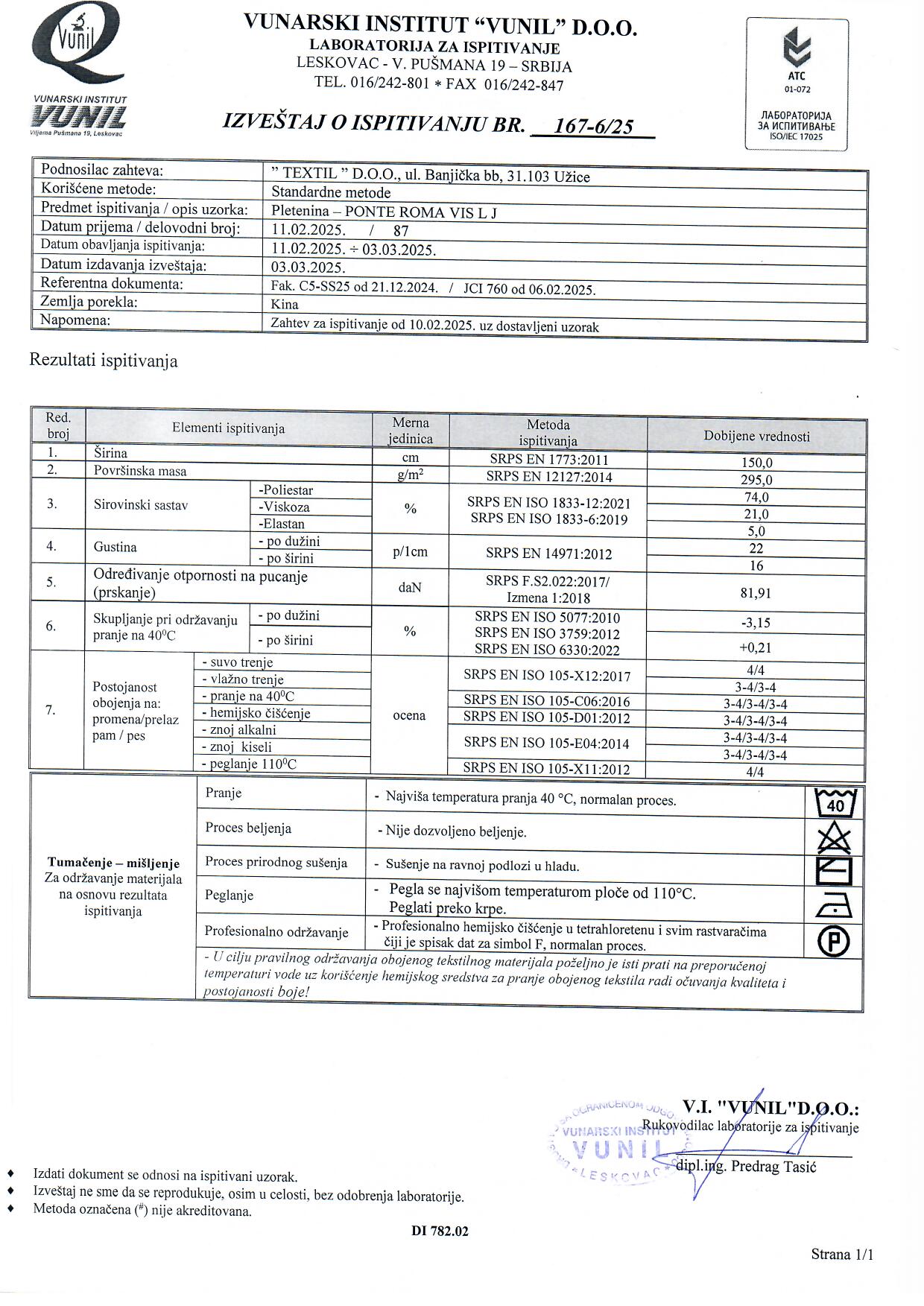 Ponte Roma materijal je kvalitetan trikotažni materijal koga odlikuje dvostrano pletena struktura. To ga čini čvrstim i lakim za šivenje. Ovaj puniji žersej je elastičan, poseduje mekan opip i teksturu štofa. Lako se održava i ne gužva. Njegova namena je višestruka. Pogodan je za šivenje haljina, suknji, pantalona, blejzera, bez obzira da li se radi o modnom ili casual programu.