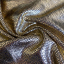 Ponte Roma sa foil printom - kombinacija vrhunskog kvaliteta i dizajna koji prati svetske modne piste! Materijal čvrste strukture, otporan na nabiranje, rastegljiv i mekan na opip. Lako se održava i ne gužva. Malo je materijala koji poseduju sve ove karakteristike, što ga čini lakim za šivenje i preporučljivim čak i za početnike. Mogućnosti za njegovu upotebu su široke: elegantni gornji delovi, haljine, suknje kao i široki spektar modela panatalona od helanki do elegantnih i dnevnih pantalona.
