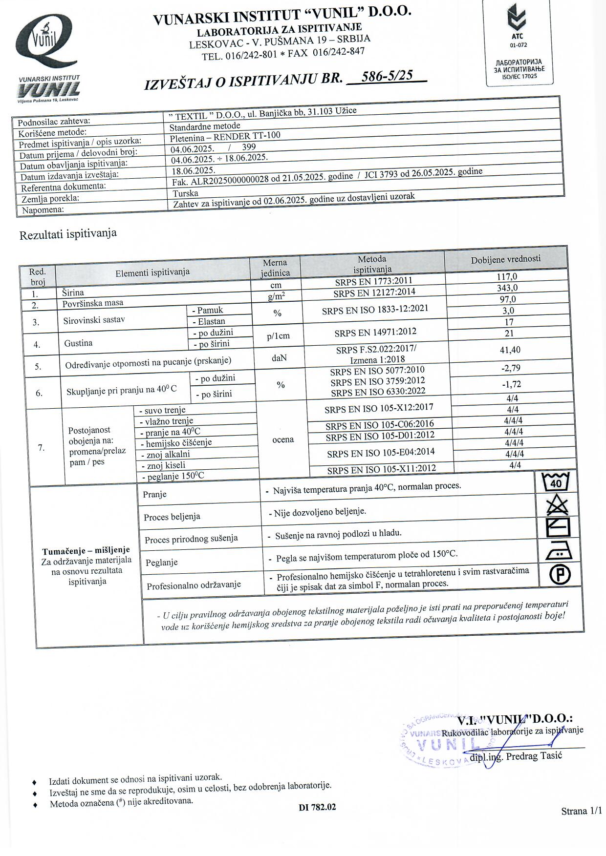 Render je veoma rastegljiva pamučna tkanina, rebraste strukture. Srednje je gramaže i obično se koristi kao prateći materijal za futer. Od njega se mogu šiti: ranfle na rukavima, nogavicama, pojasu, kao i odeća koja zahteva veliku elastičnost.