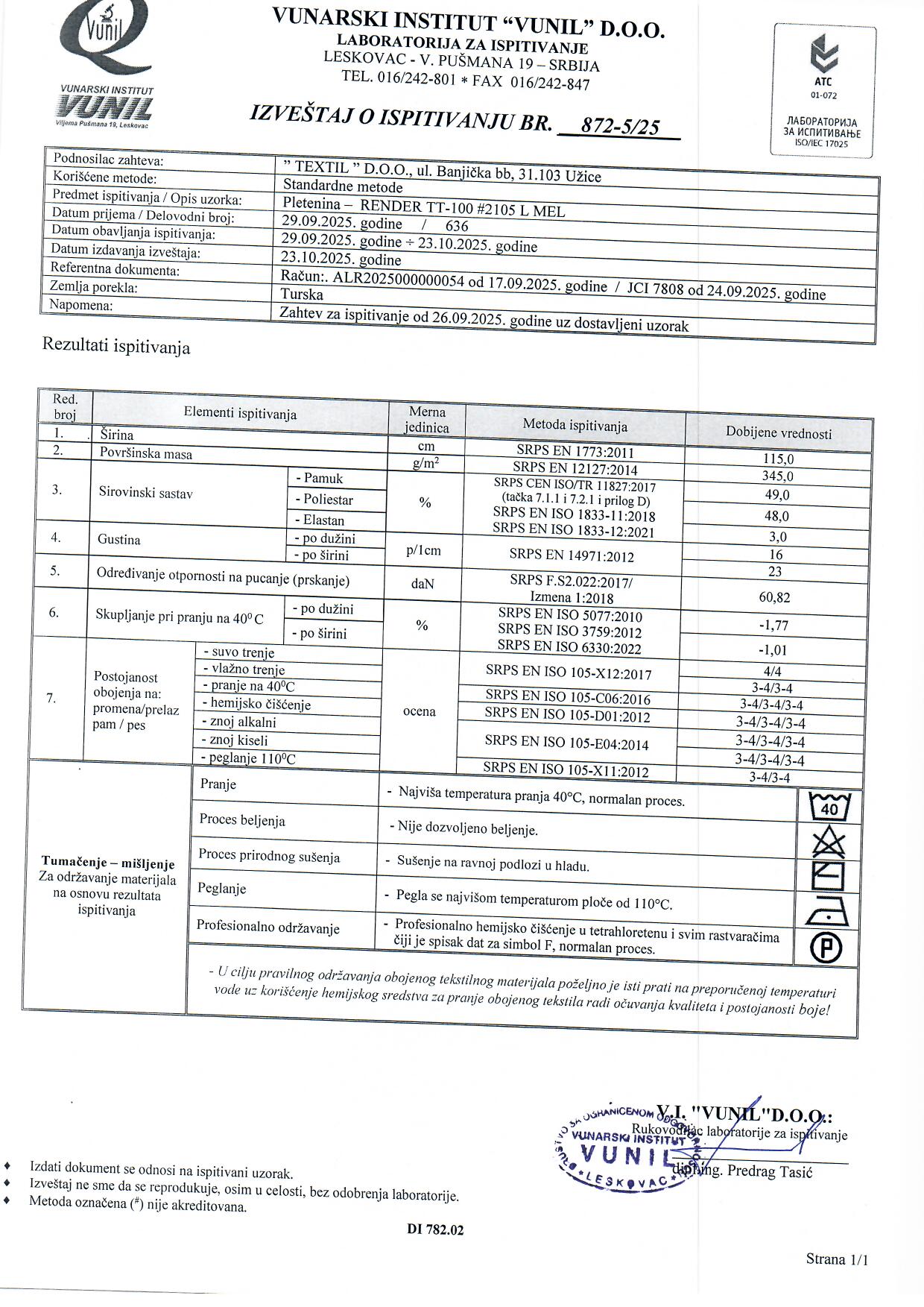 Render sa melanž efektom je veoma rastegljiva pamučna tkanina, rebraste strukture. Srednje je gramaže i obično se koristi kao prateći materijal za futer. Od njega se mogu šiti: ranfle na rukavima, nogavicama, pojasu, kao i odeća koja zahteva veliku elastičnost.