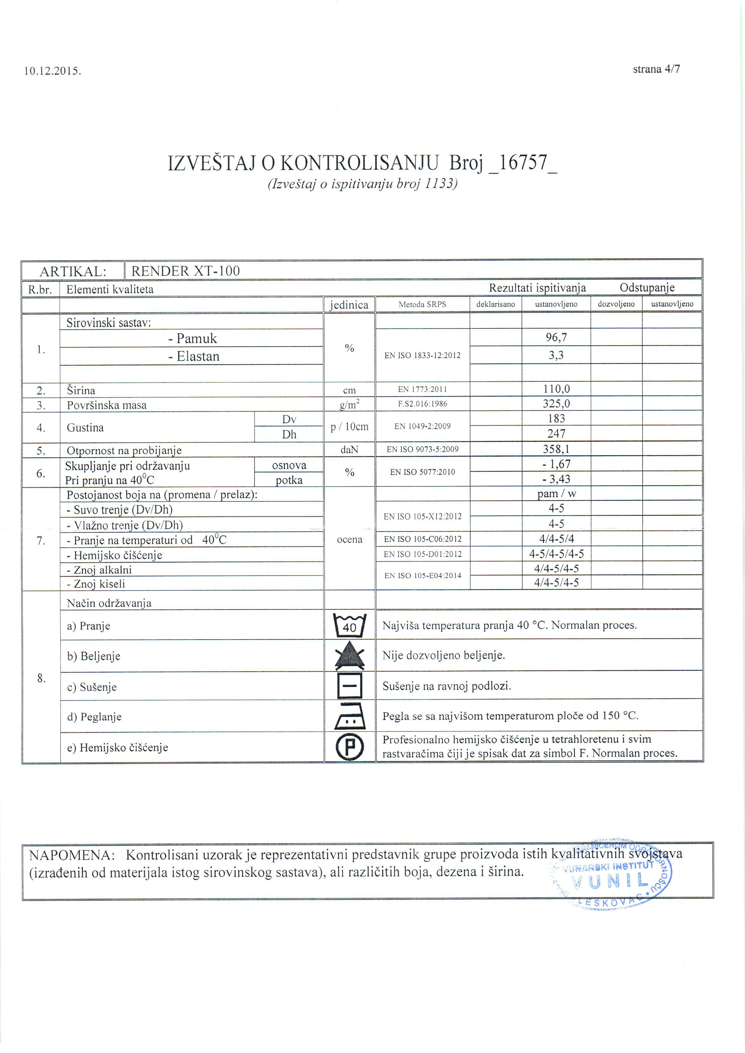 Render je veoma rastegljiva pamučna tkanina, rebraste strukture. Srednje je gramaže i obično se koristi kao prateći materijal za futer. Od njega se mogu šiti: ranfle na rukavima, nogavicama, pojasu, kao i odeća koja zahteva veliku elastičnost.