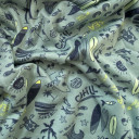 Veliki izbor dezena u laganom singlu za sve kolekcije i namene! Unikatna Textil kolekcija. Pamučna dezenirana pletenina je tkanina sa prirodnim istezanjem koju karakteriše mekan opip. Lako se održava i ne gužva. Pogodan je za haljine, majice, tunike, pidžame, donji veš… Textil dizajn studio uvek može da napravi unikatni dezen samo za vas u ovoj pletenini.