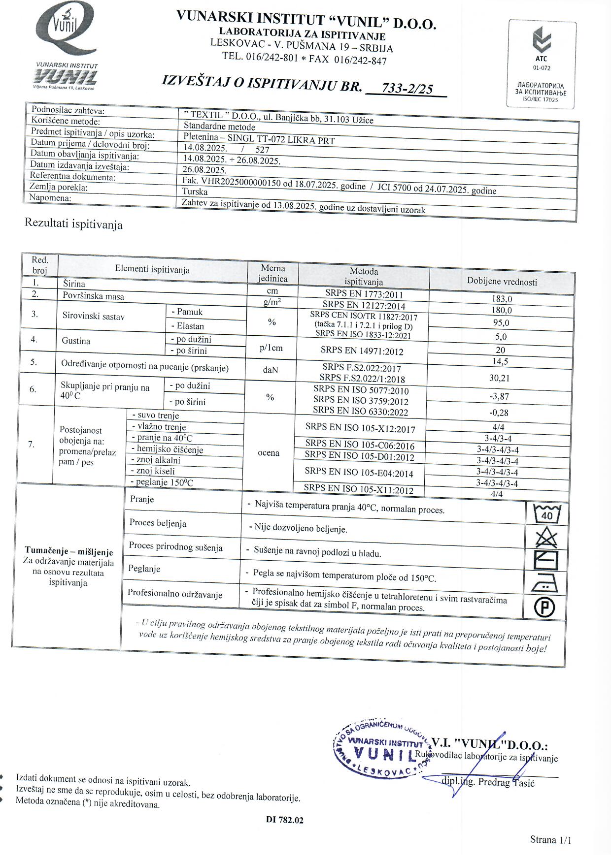 Dezeni u singlu posebno birani od strane Textil dizajn studia za sve namene i modele. Unesite u vaš život više lakoće, udobnosti i jednostavnosti koristeći ovaj dezenirani pamuk sa likrom koga karakteriše mekoća i rastegljivost. Lako se održava i ne gužva. Pogodan je za haljine, majice, tunike, pidžame, donji veš… Naš dizajn studio uvek može da napravi unikatni dezen samo za vas u ovoj pletenini