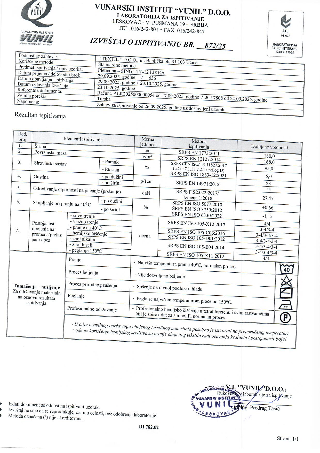 Tanki, pamučni singl sa likrom za potpunu udobnost i komfor. Višenamenska trikotažna tkanina za majice, veš, tunike, pidžame, haljine... Lako se održava i ne gužva. Odlična podloga za maštovite printove. Preko 50 boja svakodnevno raspoloživo.