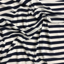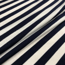 Dezenirani pamučni singl sa likrom, koga odlikuje vanvremenski dizajn sa prugama. Poseduje veoma lep opip, lako se održava i ne gužva. Pogodan je za majice, veš, tunike, helanke, pidžame…