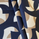 Rastegljivi štof sa likrom, izraženim twill tkanjem i atraktivnim printom. Namenjen za vaše modne i kežual kolekcije. Lepo drži formu, pa se može koristiti za klasična odela, sakoeui suknje u svim sezonama. Pored toga, od njega mogu šiti: haljine, mantili, prsluci, ležerne široke pantalone, kombinezoni.