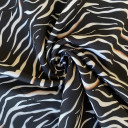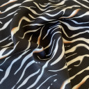 Rastegljivi štof sa likrom, izraženim twill tkanjem i atraktivnim printom. Namenjen za vaše modne i kežual kolekcije. Lepo drži formu, pa se može koristiti za klasična odela, sakoeui suknje u svim sezonama. Pored toga, od njega mogu šiti: haljine, mantili, prsluci, ležerne široke pantalone, kombinezoni.