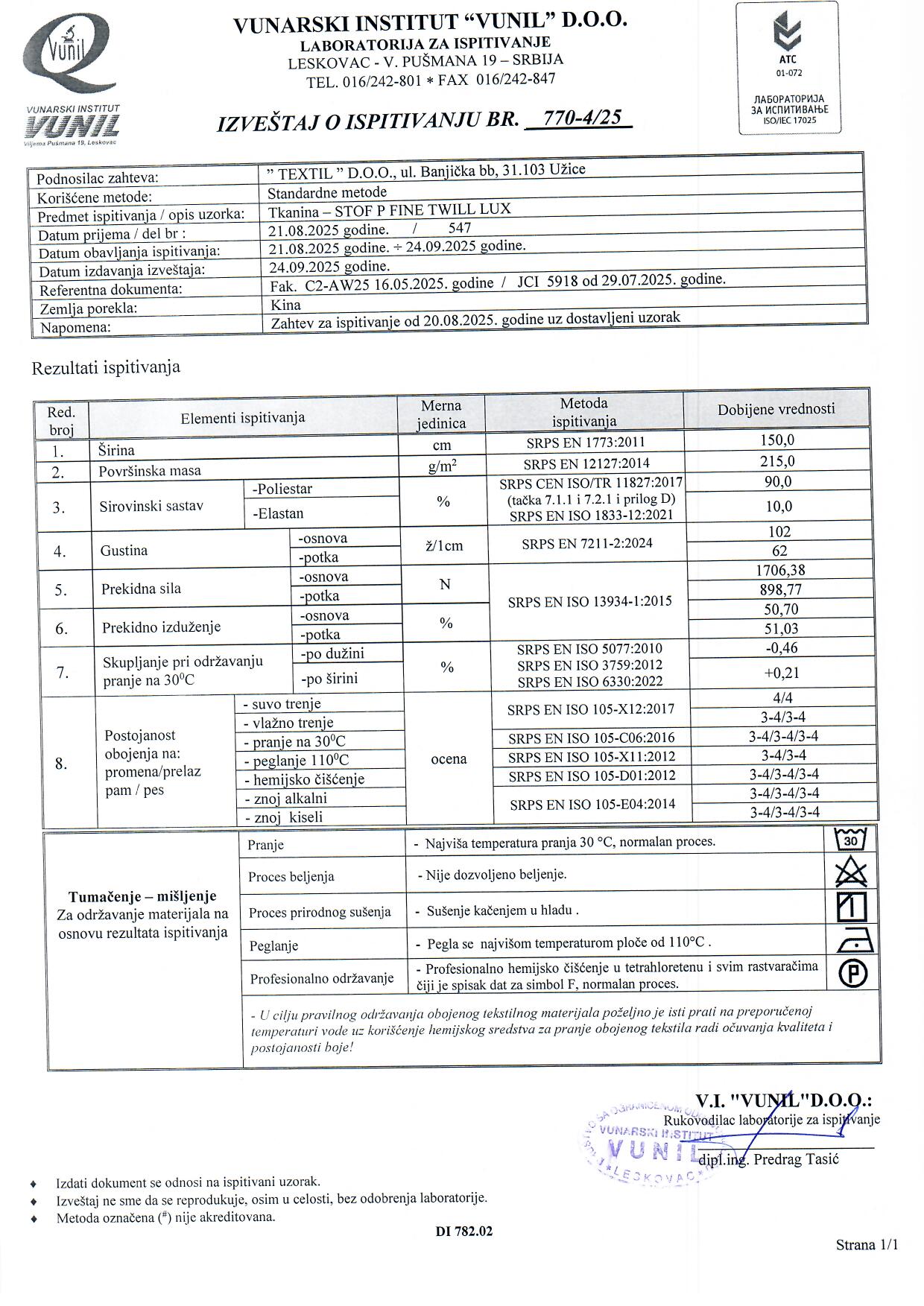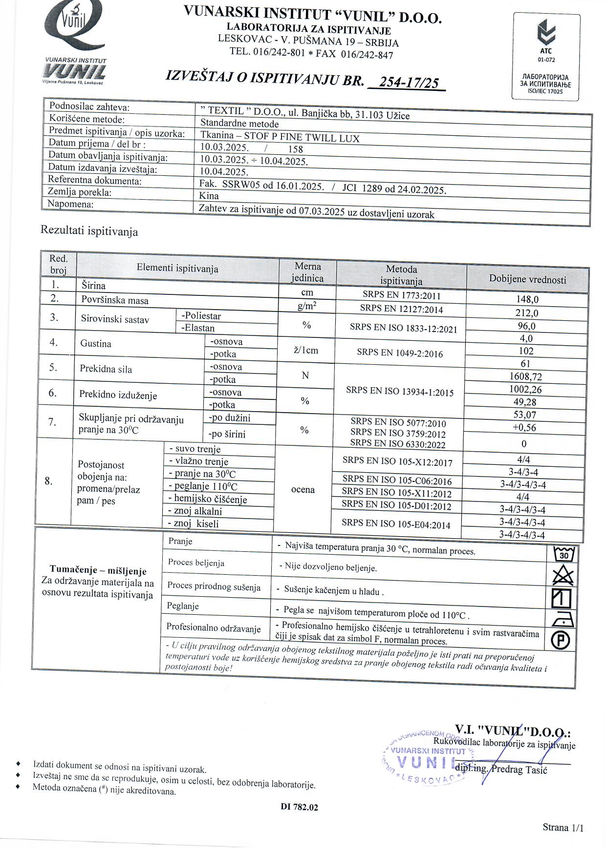 Elegantan jednobojan poliesterski stof sa likrom i izraženim twill tkanjem. Poznat još i pod nazivom kadi materijal. Namenjen za modni i casual program. Lepo drži formu, pa se može koristiti za šivenje klasičnih i poslovnih odela, sakoa, pencil suknji.Pogodan za obe sezone. Primena mu je široka, od ovog kvalitetnog materijala se šiju još i haljine, mantili, prsluci, ležerne široke pantalone, kombinezoni. Raspolaže širokom paletom uvek aktuelnih boja.