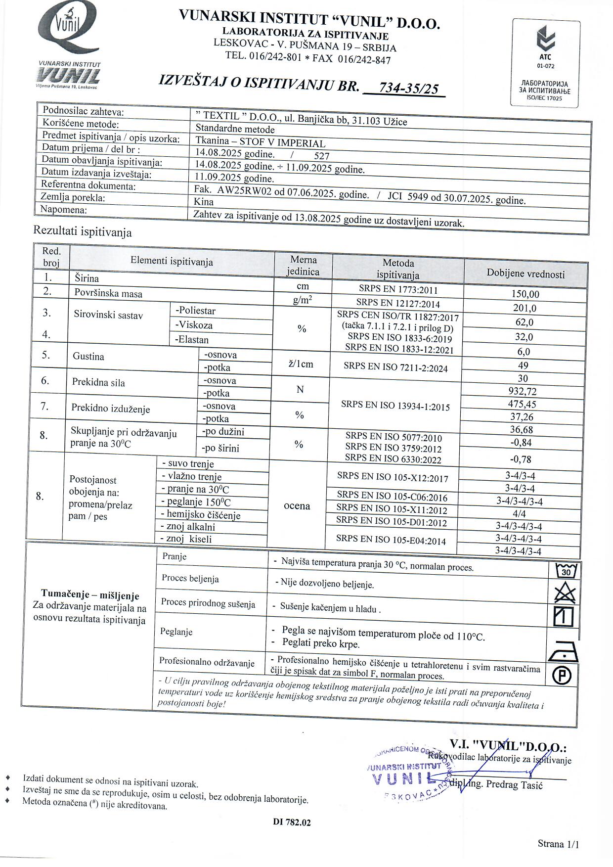 Elegantna tkanina za odela, suptilonog sjaja koji joj daje profinjen izgled. Dodatak elastina pruža komfor i blagu rastegljivost. Tkanina je glatka, prijatna za nošenje i oblikuje se lako , što je čini idealnom za izradu sakoa, pantalona, suknji i kompleta za poslovne i svečane prilike.