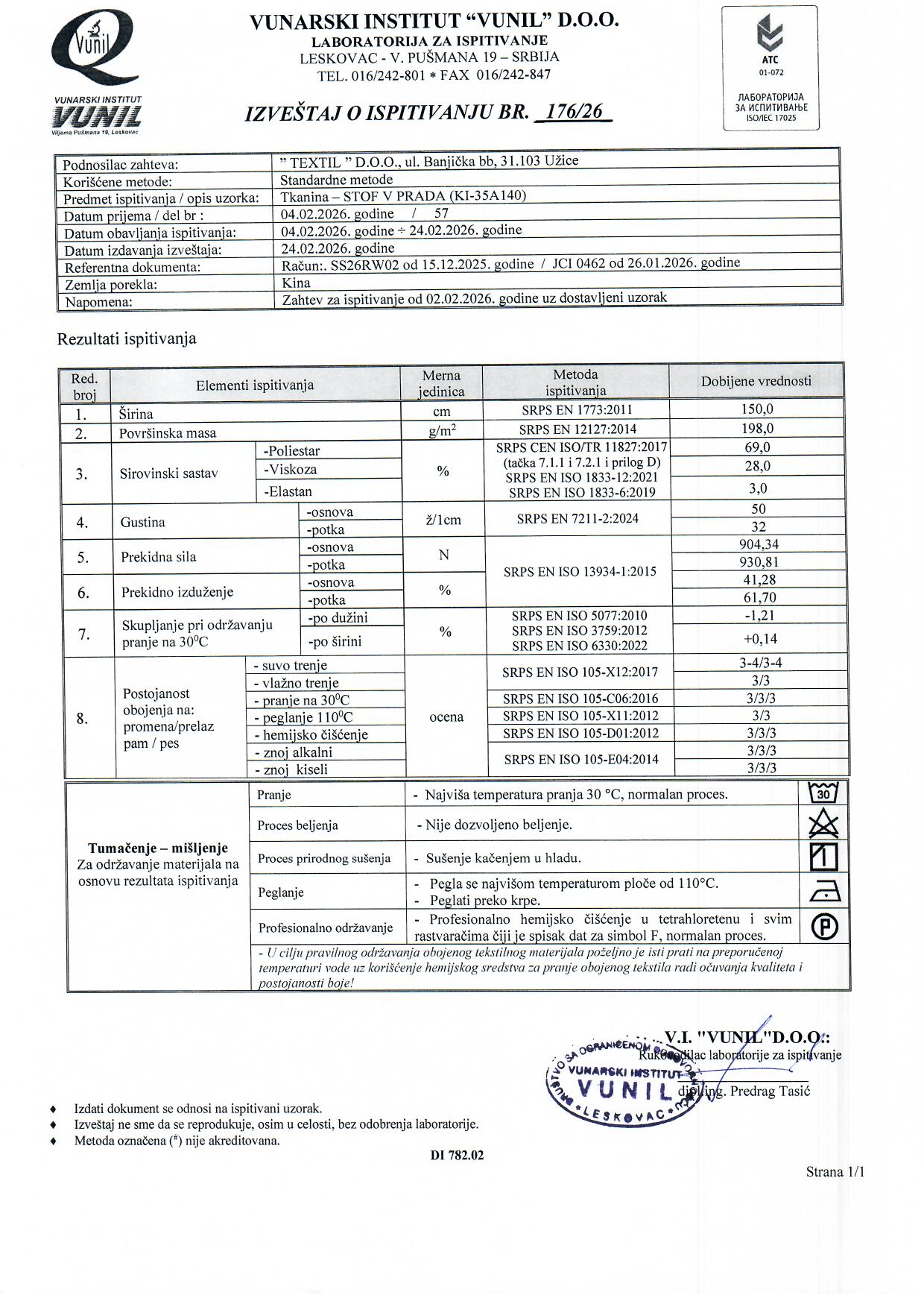 Bazni viskozni štof, izraženo finog tkanja i prijantnog opipa. Široka paleta boja omogućava njegovu primenu u obe sezone. Koristi se podjednako u Modnom i Casual programu. Idealan za sve modele pantalona, suknji, sakoa. Takođe je dobar za svevremene, bazne modele haljina i klasičnih odela. U modnom programu od njega se najčešće rade klasična odela (sako/pantalone, sako/suknja) i haljine. U Casualu takođe, samo su modeli prilagođeni programu (npr. pantalone sa trakom sa strane, široka suknja na preklop, široke ležerne pantalone sa visokim strukom…)