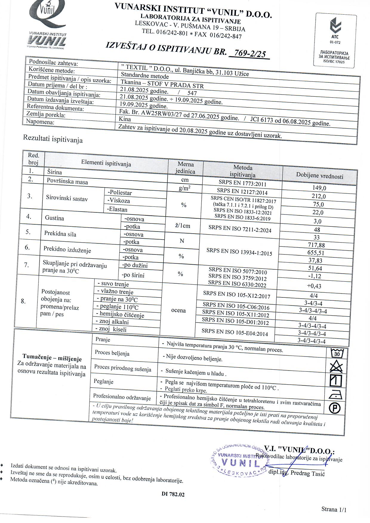 Viskozni štof sa prugicama, izraženo finog tkanja i prijatnog opipa. Koristi se podjednako u modnom i kežual programu. Odlikuje ga čvrstina i oblikovan pad. Kreirajte poslovna odela, kao i pantalone, prsluke, suknje, sakoe. Takođe je dobar za svevremene, bazne modele haljina i klasičnih odela.