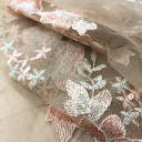 Mrežasti til sa cvetnim dizajnom i bordurom sa obe strane. Veoma je mekan i prijatan na dodir. Odlikuje ga lep pad pa je idealan za šivenje: haljina, suknji, majica. Možete ga koristiti za modne detalje u kombinaciji sa mnogim drugim materijalima.