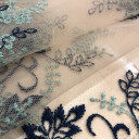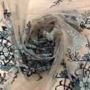 Mrežasti til sa cvetnim dizajnom i bordurom sa obe strane. Veoma je mekan i prijatan na dodir. Odlikuje ga lep pad pa je idealan za šivenje: haljina, suknji, majica. Možete ga koristiti za modne detalje u kombinaciji sa mnogim drugim materijalima.