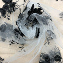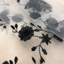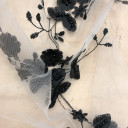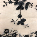 Mrežasti til sa cvetnim dizajnom i bordurom. Veoma je mekan i prijatan na dodir. Odlikuje ga lep pad pa je idealan za šivenje: haljina, suknji, majica. Možete ga koristiti za modne detalje u kombinaciji sa mnogim drugim materijalima.
