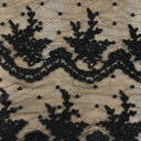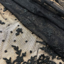 Mrežasti til sa cvetnom bordurom. Veoma je mekan i prijatan na dodir. Odlikuje ga lep pad pa je idealan za šivenje: haljina, suknji, majica. Možete ga koristiti za modne detalje u kombinaciji sa mnogim drugim materijalima.