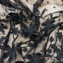 Mrežasti til sa cvetnim i geometrijskim dizajnom i bordurom. Veoma je mekan i prijatan na dodir. Odlikuje ga lep pad pa je idealan za šivenje: haljina, suknji, majica. Idealan je za dečije kolekcije. Možete ga koristiti za modne detalje u kombinaciji sa mnogim drugim materijalima.