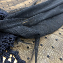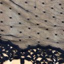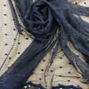 Mrežasti til sa cvetnim i geometrijskim dizajnom i bordurom. Veoma je mekan i prijatan na dodir. Odlikuje ga lep pad pa je idealan za šivenje: haljina, suknji, majica. Idealan je za dečije kolekcije. Možete ga koristiti za modne detalje u kombinaciji sa mnogim drugim materijalima.