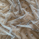 Mrežasti til sa sitnim perlama. Veoma je mekan i prijatan na dodir. Odlikuje ga lep pad pa je idealan za šivenje: haljina, suknji, majica. Možete ga koristiti za modne detalje u kombinaciji sa mnogim drugim materijalima.