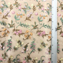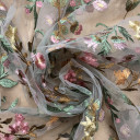 Romantični til cvetnog dizajna sa bordurom. Veoma je mekan i prijatan na dodir. Odlikuje ga lep pad pa je idealan za šivenje: romantičnih haljina, suknji, majica. Možete ga koristiti za modne detalje u kombinaciji sa mnogim drugim materijalima.