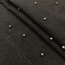 Elegantni kaputski štof sa našivenim perlicama koje ga čine pogodnim za ekskluzivne kolekcije. Baršunastog opipa, gladak i mekan. Njegovo gusto tkanje daje mu zaštitna svojstva i čini ga idealnim za kišno ili snežno vreme. Izuzetno otporan na habanje, rastezanje i skupljane. Ovaj topli materijal pogodan je za šivenje otmenih i casual kaputa kao i jesenjih i zimskih jakni, mantila i odela. Za postavljanje preporučujemo postavu Post P Acetat iz naše ponude.