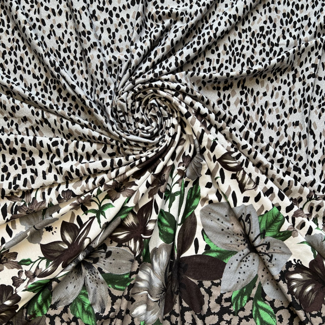 Luksuzna viskozna pletenina sa digitalnom štampom. U svom sastavu ima likru, što pruža vašoj odeći dodatnu udobnost i fleksibilnost. Mekana na opip, udobna, idealna kako za ležerne, tako i za haljine koje prate liniju tela, majice, bluze, tunike, rolke, kardigane. Kontrolisano poreklo robe potvrđeno je euro 1 obrascem.