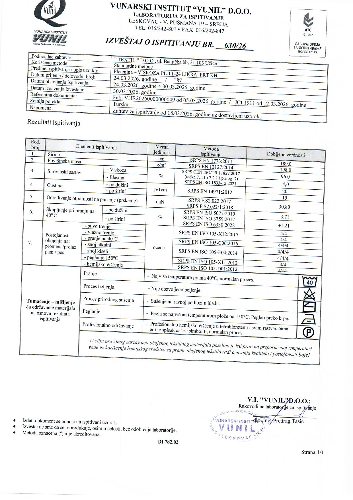Dezenirana luksuzna viskozna pletenina srednje težine. Poseduje likru, što pruža odeći dodatnu udobnost i fleksibilnost. Mekana na opip, udobna, idealna kako za ležerne, tako i za haljine koje prate liniju tela, majice, bluze, tunike, rolke, kardigane. Kontrolisano poreklo robe potvrđeno je euro 1 obrascem.