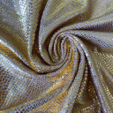Dezenirana viskozna pletenina sa foilom. Mekana i fina, poseduje likru, što pruža vašoj odeći dodatnu udobnost i fleksibilnost. Besprekorno tanka i lagana idealna je za lepršave haljine, bluze, tunike, kardigane i još mnogo toga!