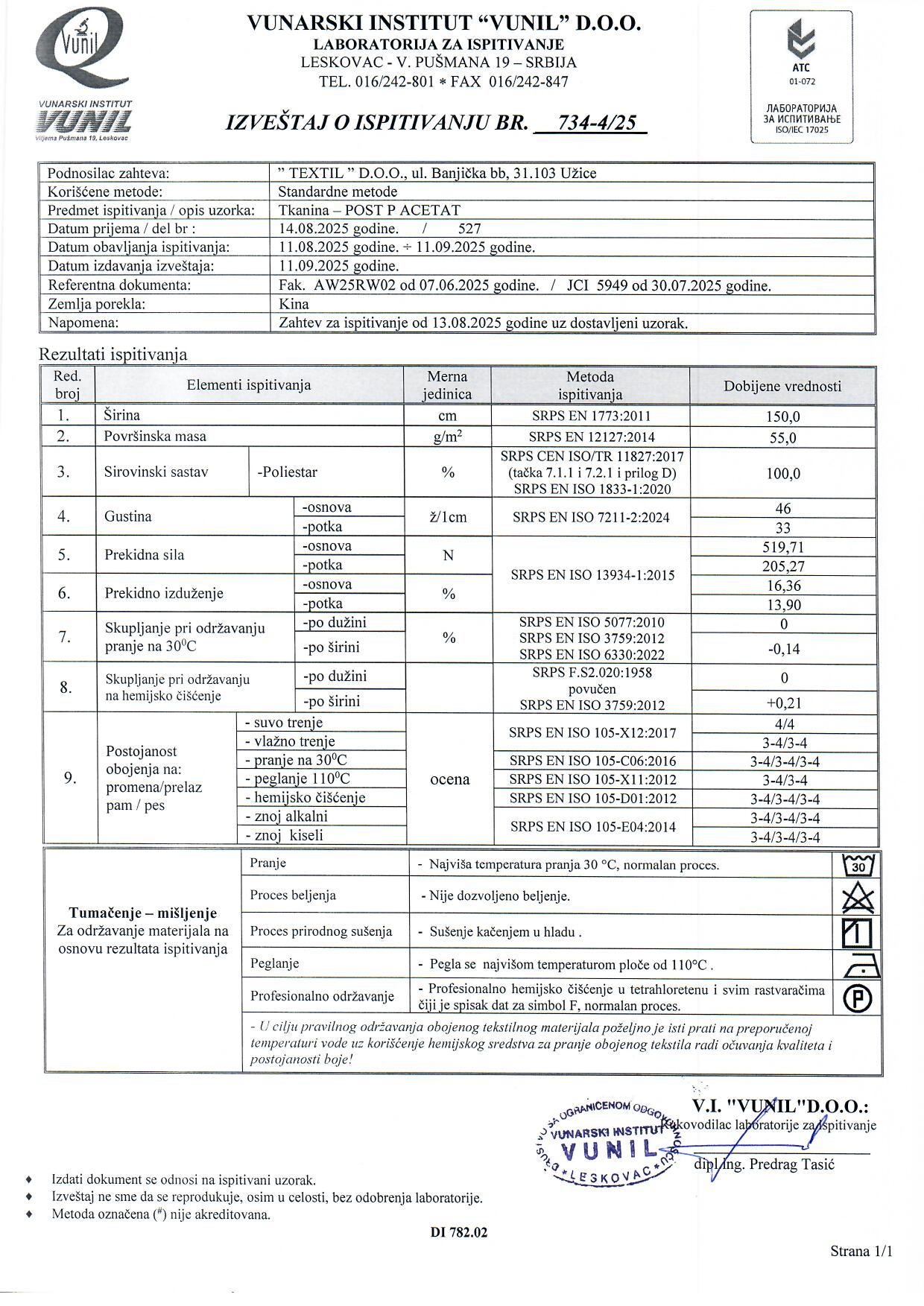 Textil vam donosi koloristički raznovrsnu kolekciju poliestarske postave POST P ACETAT. Karakteriše je lep sjaj i gladak opip. Ova posebna tkanina lagane je težine, ali je i pored toga vrlo jaka i izdržljiva. Poliestarski materijali su generalno otporni na mrlje, istezanje i skupljanje. Iskoristite ovaj materijal za postavljanje kaputa, jakni, sakoa, mantila...